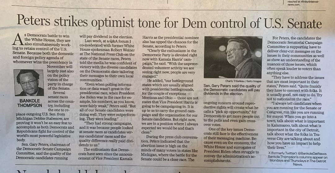 -- "Peters strikes optimist tone for Dem control of U.S. Senate